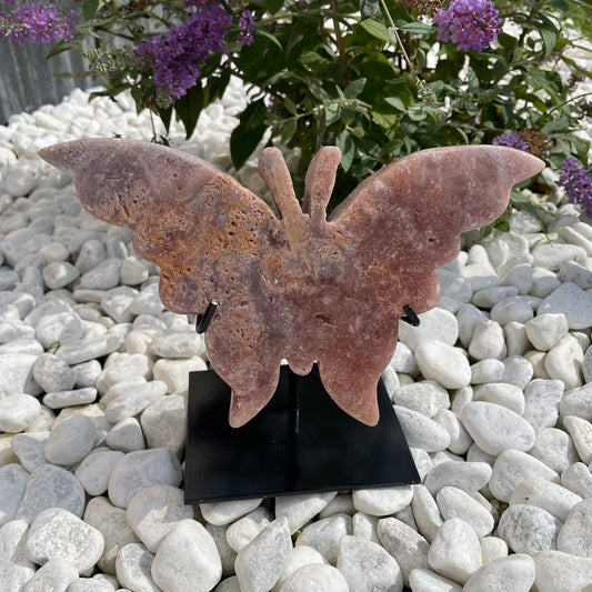UitverkochtRode Jaspis Vlinder op Roze Amethist base